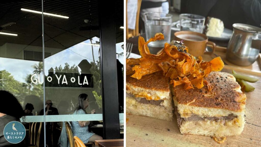 Caffiend(カフィエンド)と同じ系列のカフェ「Guyala Cafe(グヤラ・カフェ)」。エスプラネードを北に進んだところにあります。(中心街からは少し歩きます)