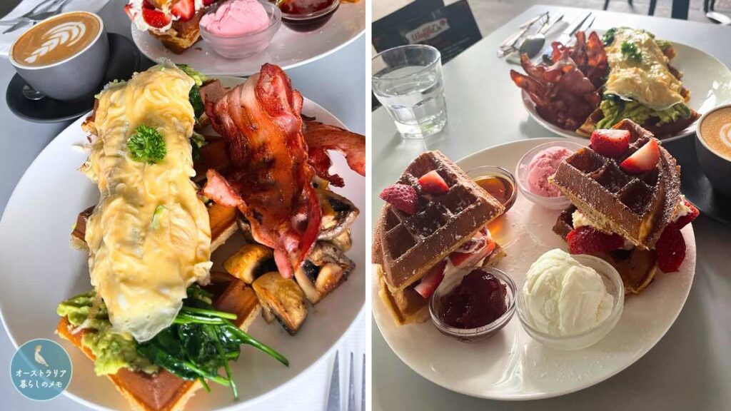 オーストラリアでスイーツ系を頼むと日本人の口には甘すぎることが多いのですが、ここのワッフルは程よい甘さで美味しいです!